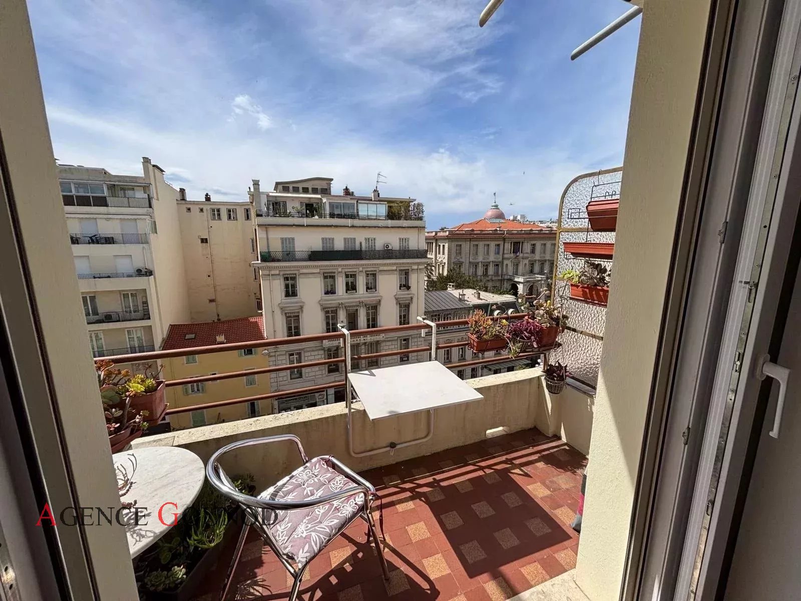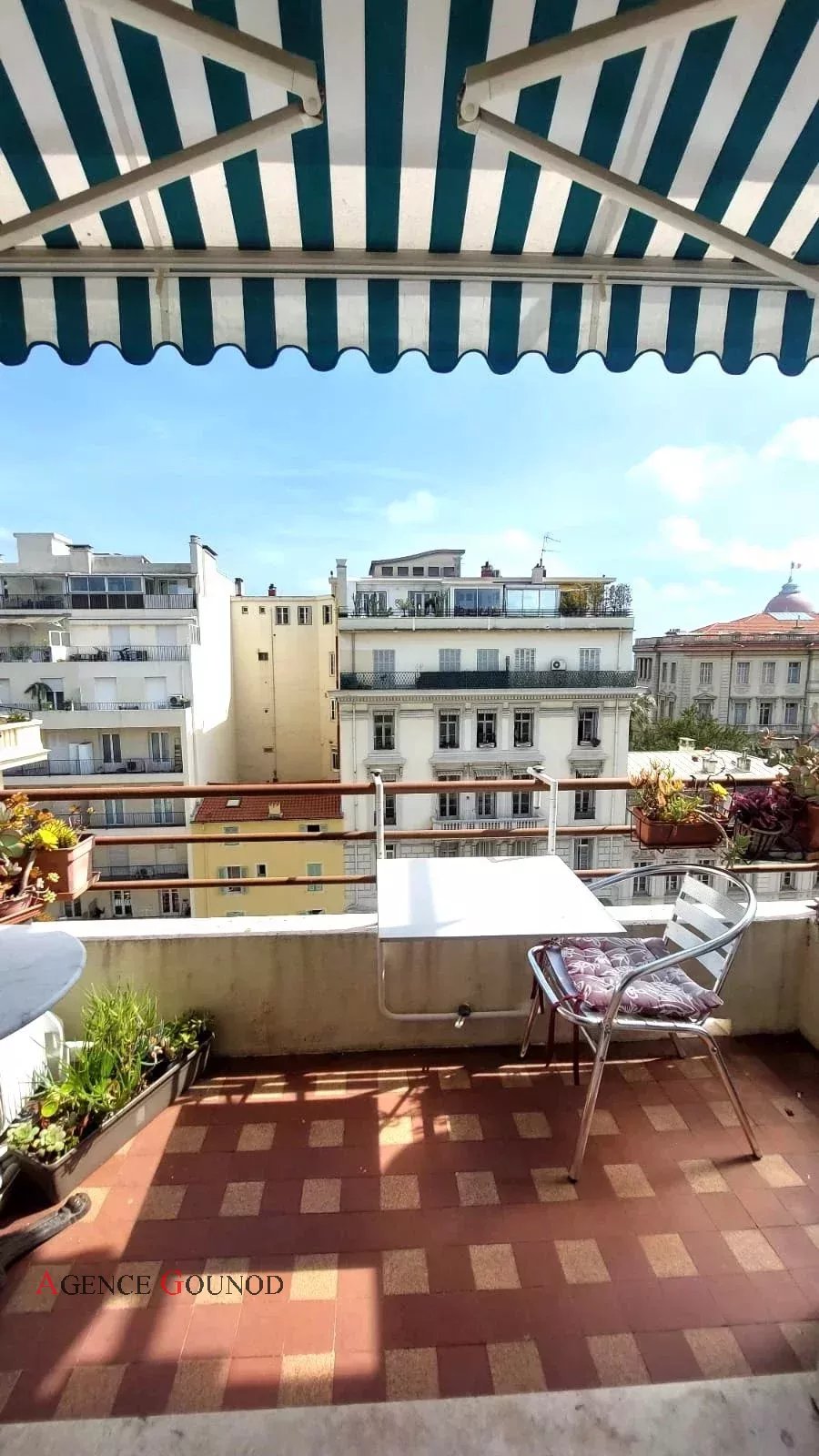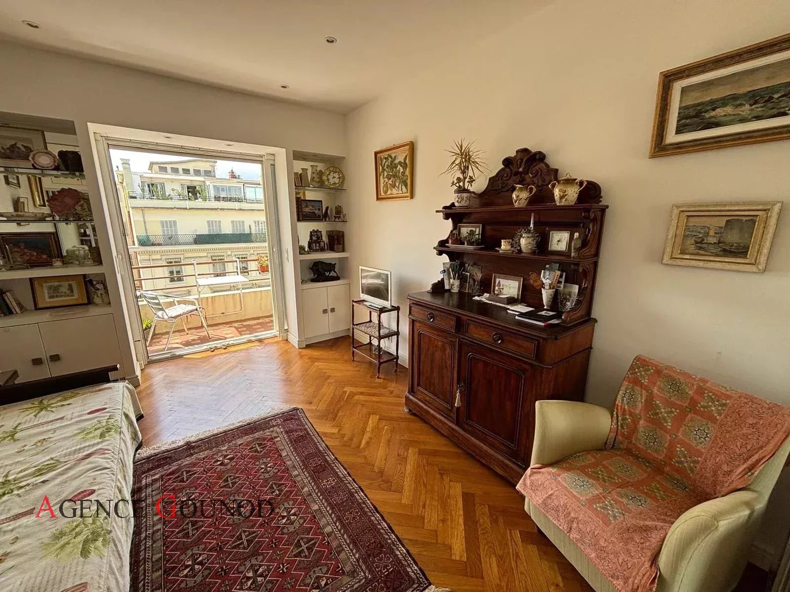 Appartement 2P Nice Carré d'Or Baisse de prix Appartement Nice Carré d'or Rue de France, dans un immeuble bien entretenu en retrait de la rue au calme absolu, nous vous présentons un appartement de 34m² (33.57m² loi carrez) en avant dernier étage avec ascenseur, composé d'une entrée avec placard, cuisine indépendante équipée, pièce attenante, une salle d'eau avec wc, une pièce à vivre donnant sur un balcon plein sud avec vue dégagée sur le Musée Masséna, le dôme du Negresco et la rue de France. Excellente localisation pour un pied à terre et profiter de l'animation de la ville en étant à 50m de la Promenade des Anglais et de toutes les commodités au calme. Possibilité d'acheter une cave et un parking (dans l'espace privé du Palais Masséna). Statut de copropriété, 88 lots principaux. DPE: D (204 KW)/ GES : A (6 KG) Estimation des couts annuels d'énergie du logement entre 614euros et 830 euros (prix moyen des énergies indexés des années ) Les risques auxquels ce bien est exposé sont disponibles sur : georisques.gouv.fr Charges annuelles de copropriété : 1.524 euros Pas de procédure à notre connaissance dans l'immeuble. Honoraires inclus à la charge du vendeur.
