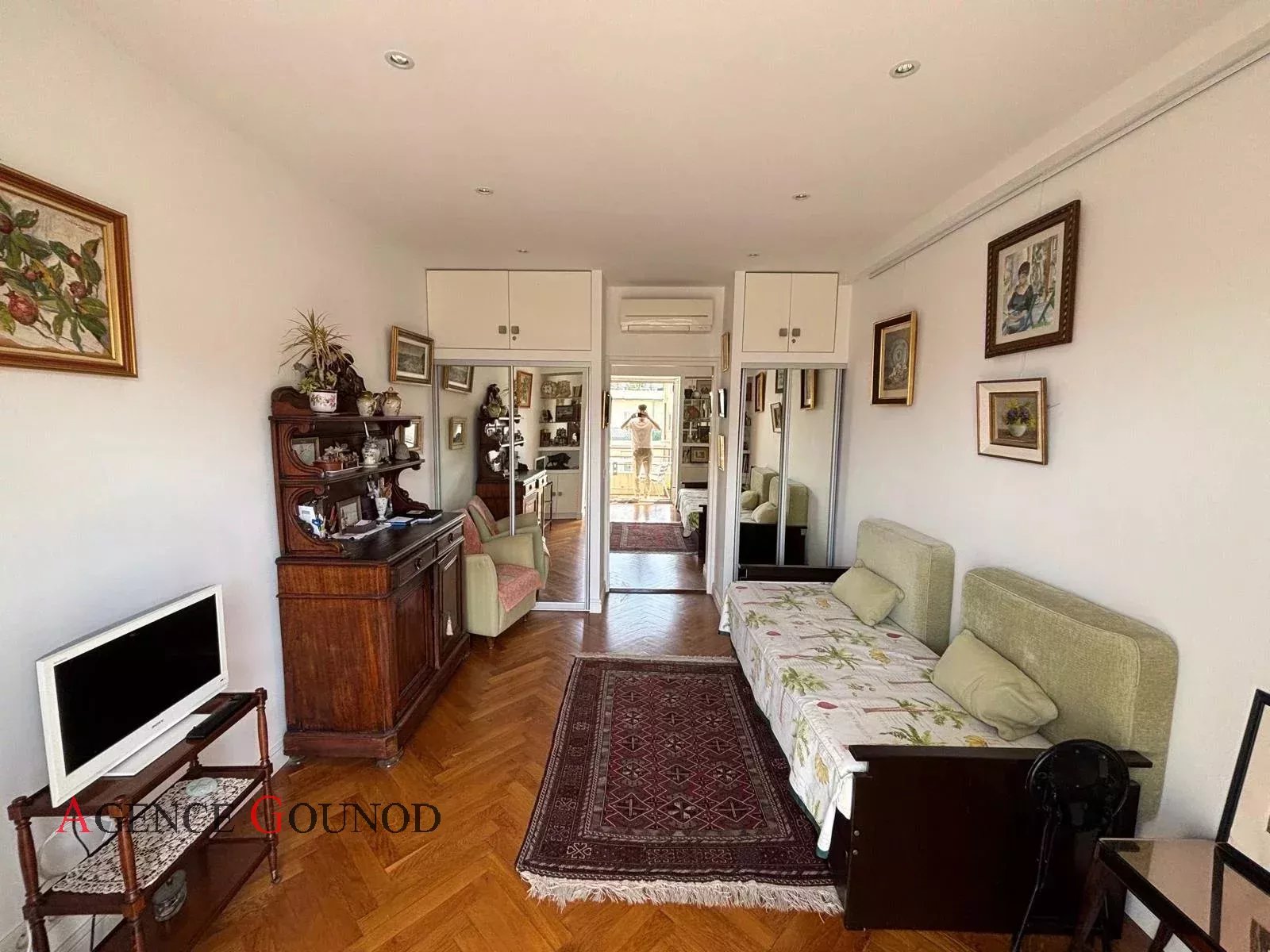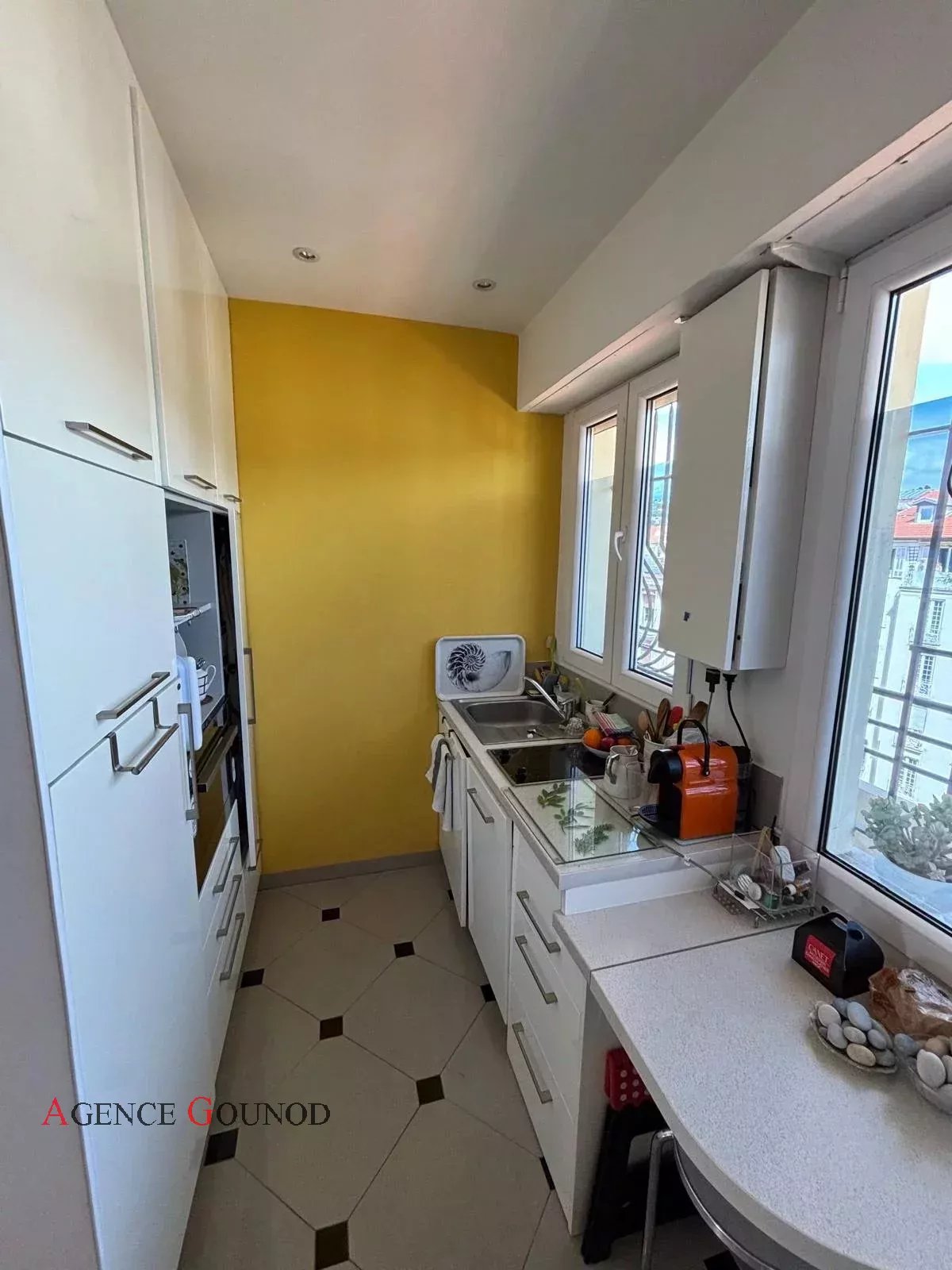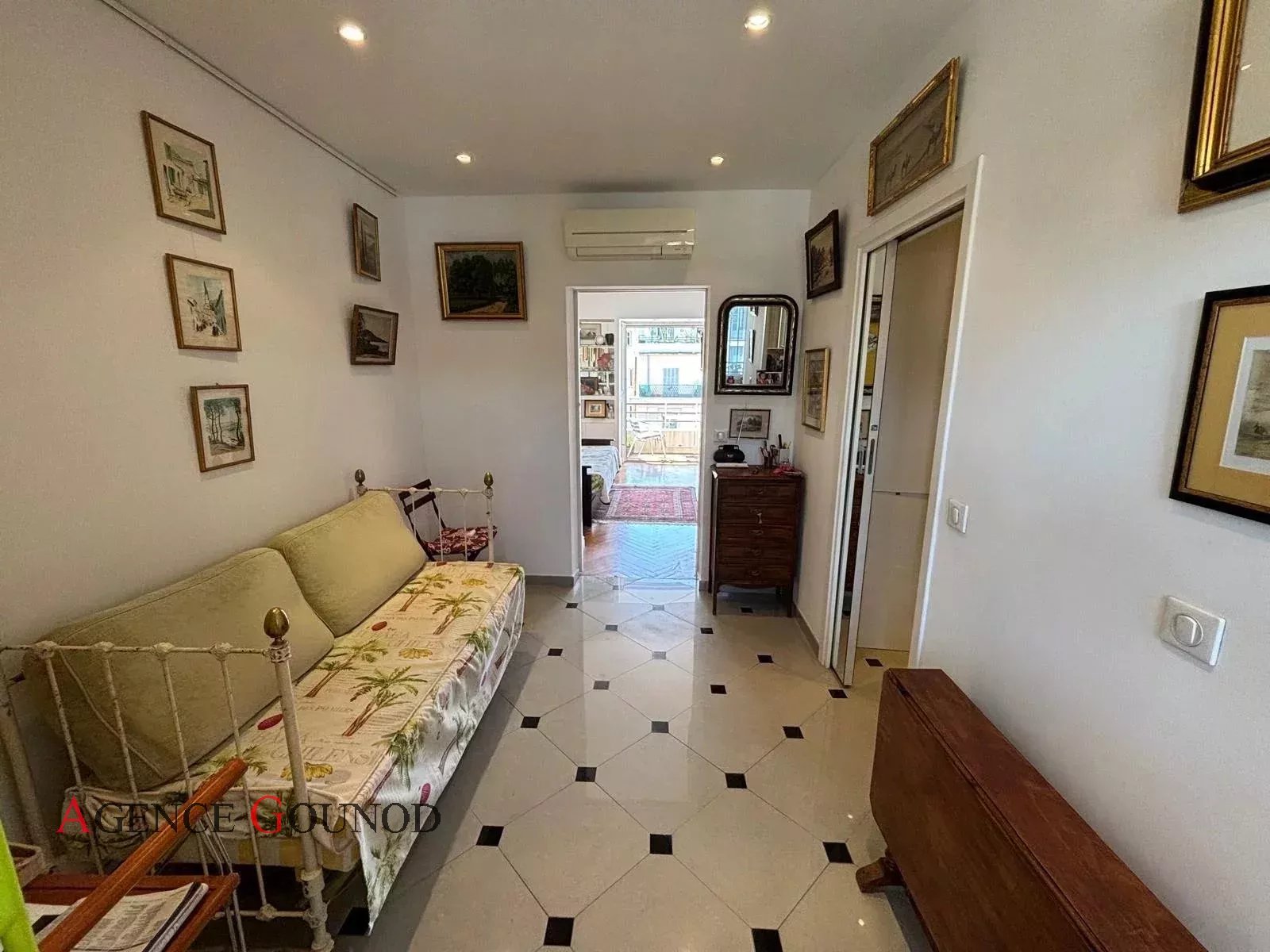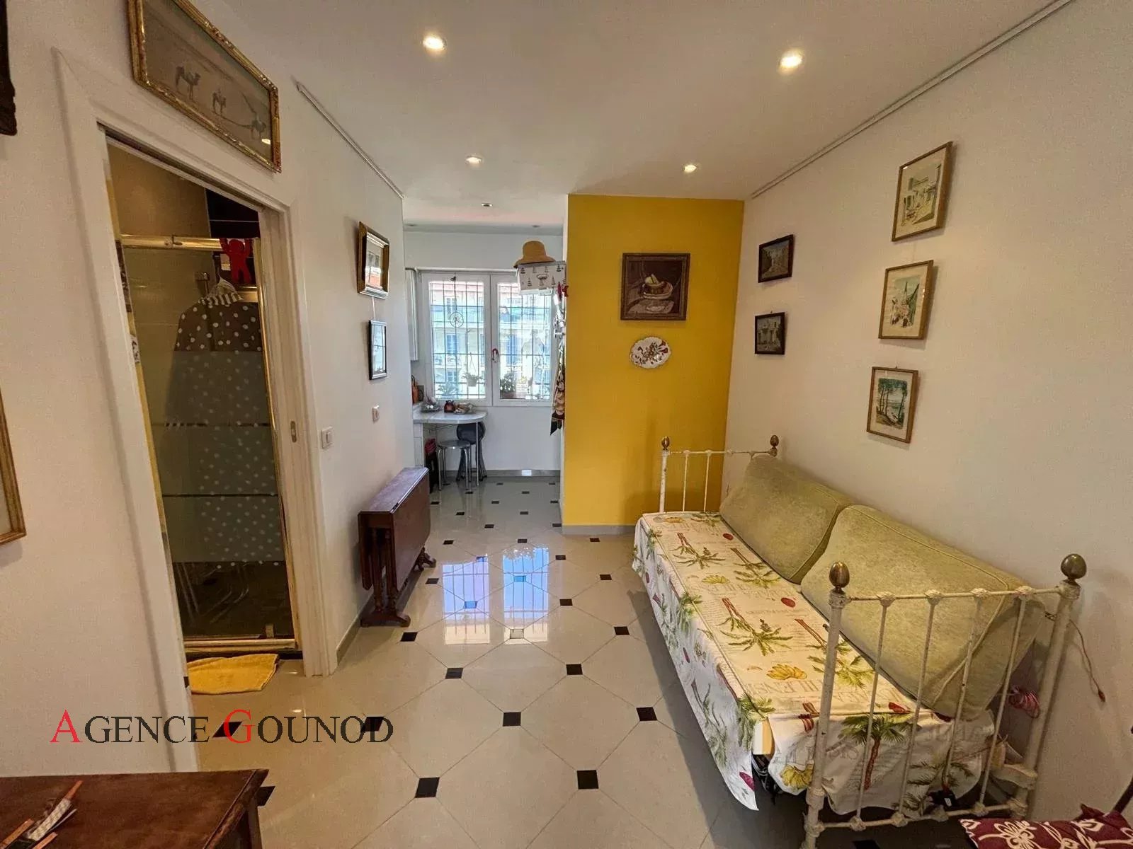 Appartement 2P Nice Carré d'Or Baisse de prix Appartement Nice Carré d'or Rue de France, dans un immeuble bien entretenu en retrait de la rue au calme absolu, nous vous présentons un appartement de 34m² (33.57m² loi carrez) en avant dernier étage avec ascenseur, composé d'une entrée avec placard, cuisine indépendante équipée, pièce attenante, une salle d'eau avec wc, une pièce à vivre donnant sur un balcon plein sud avec vue dégagée sur le Musée Masséna, le dôme du Negresco et la rue de France. Excellente localisation pour un pied à terre et profiter de l'animation de la ville en étant à 50m de la Promenade des Anglais et de toutes les commodités au calme. Possibilité d'acheter une cave et un parking (dans l'espace privé du Palais Masséna). Statut de copropriété, 88 lots principaux. DPE: D (204 KW)/ GES : A (6 KG) Estimation des couts annuels d'énergie du logement entre 614euros et 830 euros (prix moyen des énergies indexés des années ) Les risques auxquels ce bien est exposé sont disponibles sur : georisques.gouv.fr Charges annuelles de copropriété : 1.524 euros Pas de procédure à notre connaissance dans l'immeuble. Honoraires inclus à la charge du vendeur.