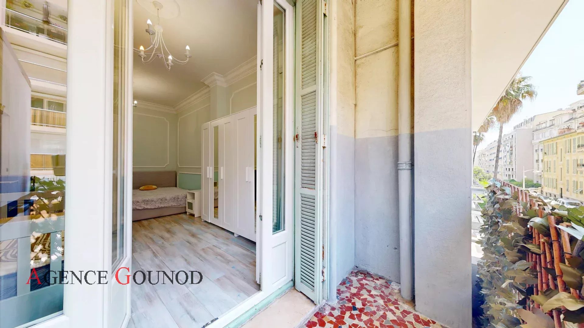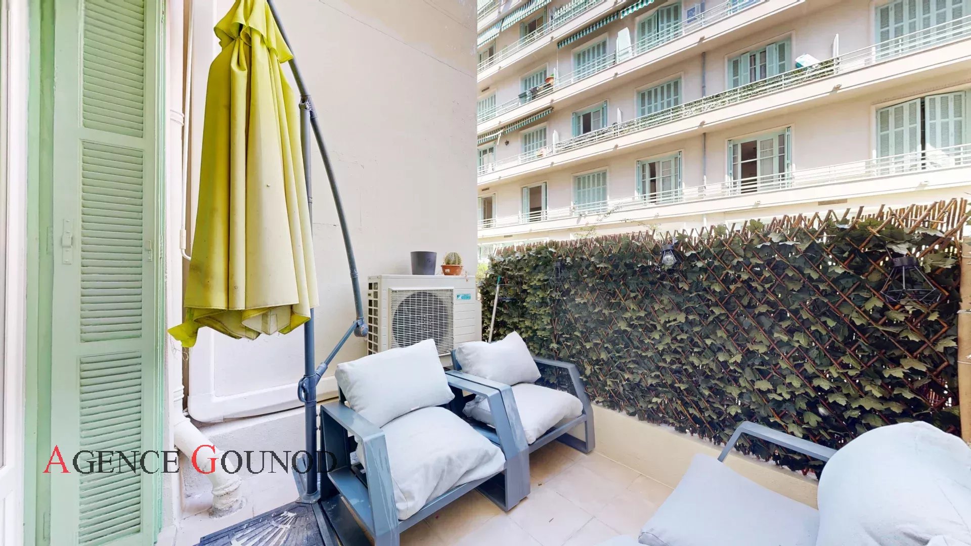 NICE - FLEURS : Dans une belle résidence des années 1950 très bien entretenue, conçue par le réputé architecte Honoré AUBERT, JOLI 3 PIÈCES TRAVERSANT AVEC BALCON ET TERRASSE AU CALME.