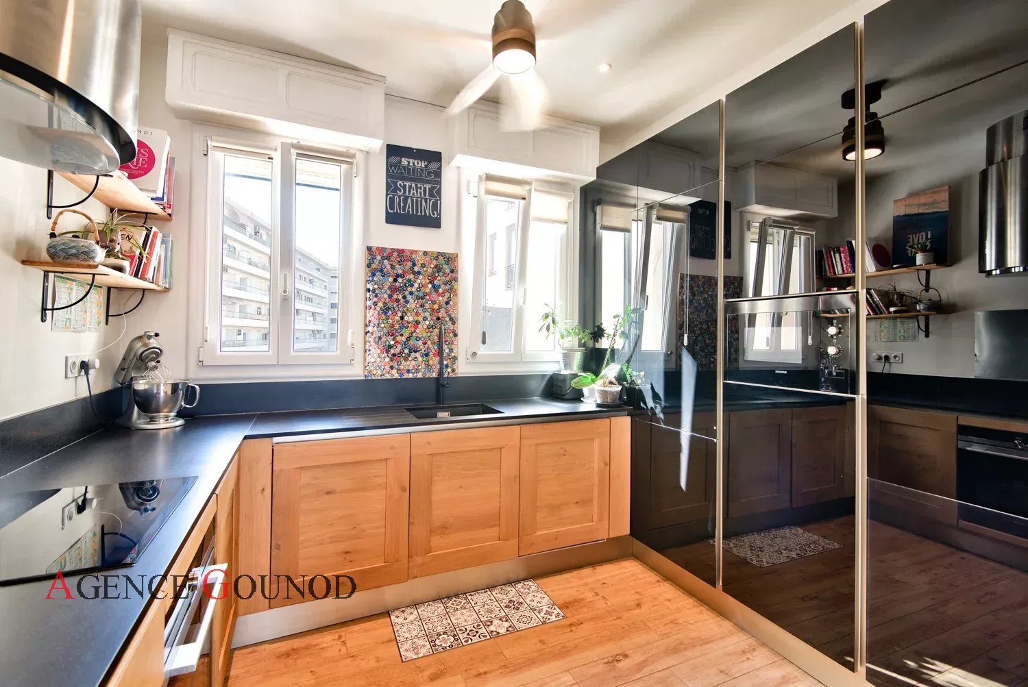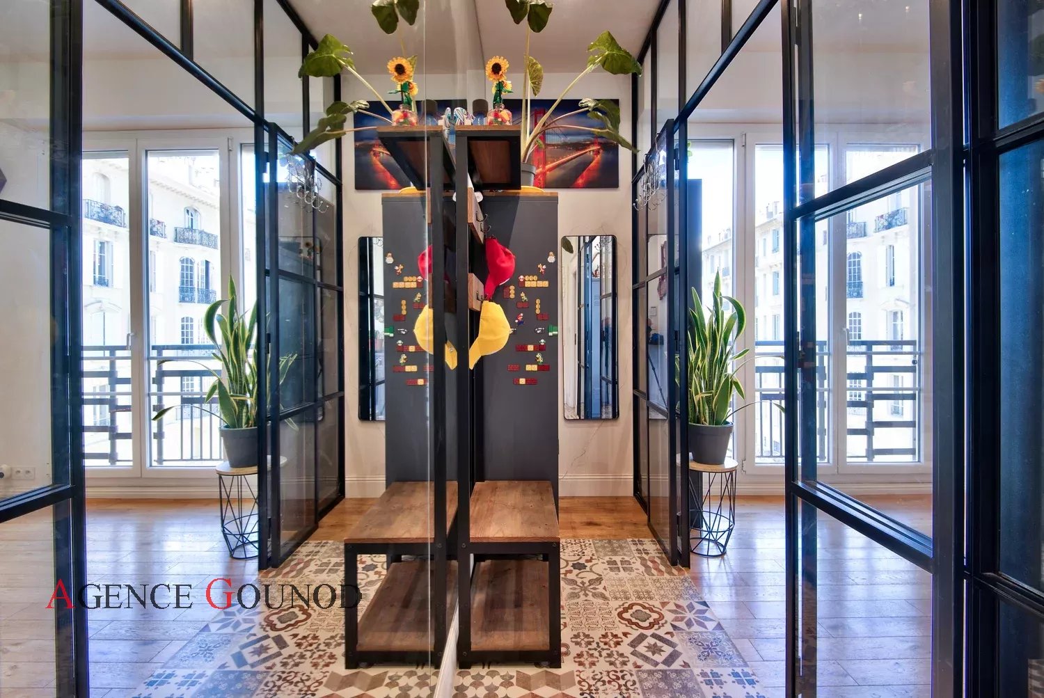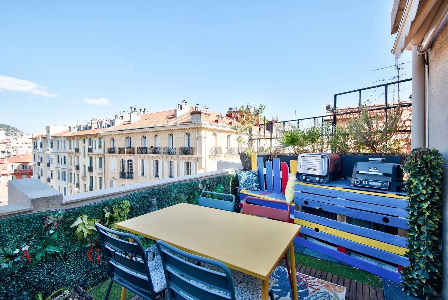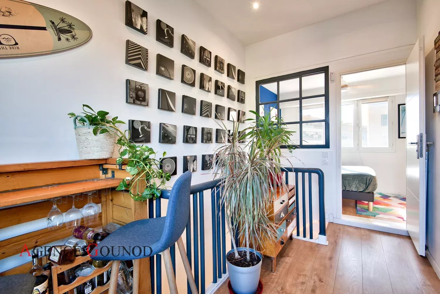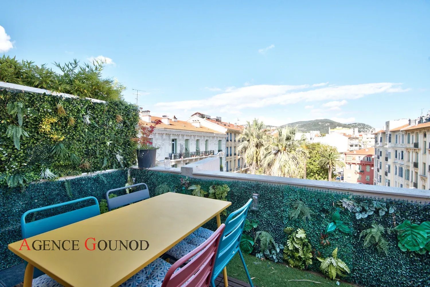NICE MUSICIENS - À deux pas du Carré d'Or, dans un immeuble Art Déco avec ascenseur, magnifique triplex de 87 m² traversant Est-Ouest, baigné de lumière. L'appartement se compose d'un séjour avec parquet massif, cuisine ouverte, cellier, 3 chambres, salle d'eau, WC séparé et superbe terrasse sans vis-à-vis avec vue sur le Mont Boron.
