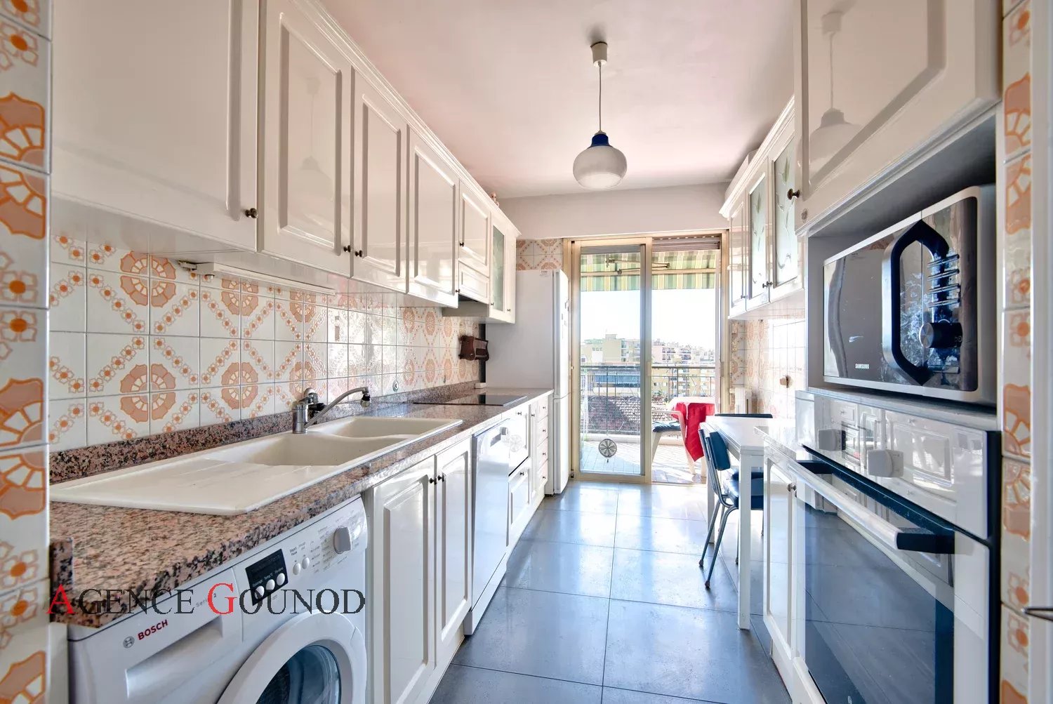 Nice Cessole : 3 pièces de 82 m² avec terrasses, situé en étage élevé d'une résidence de standing, au calme, a quelques pas de l'horloge de Cessole. Cet appartement traversant offre 2 terrasses offrant des vues dégagées sur la ville. Il est composé d'une entrée, un séjour et une cuisine indépendante ouvrant sur la terrasse au sud, une partie nuit composée de 2 chambres avec placard ouvrant sur une seconde terrasse, un dressing, une salle de bain et un Wc indépendant. L'appartement offre des très beaux volumes. Rafraichissement des pièces d'eau à prévoir. Vendu avec une cave et possibilité de garage dans l'immeuble. Environnement calme et proximité immédiate des commerces et transports.