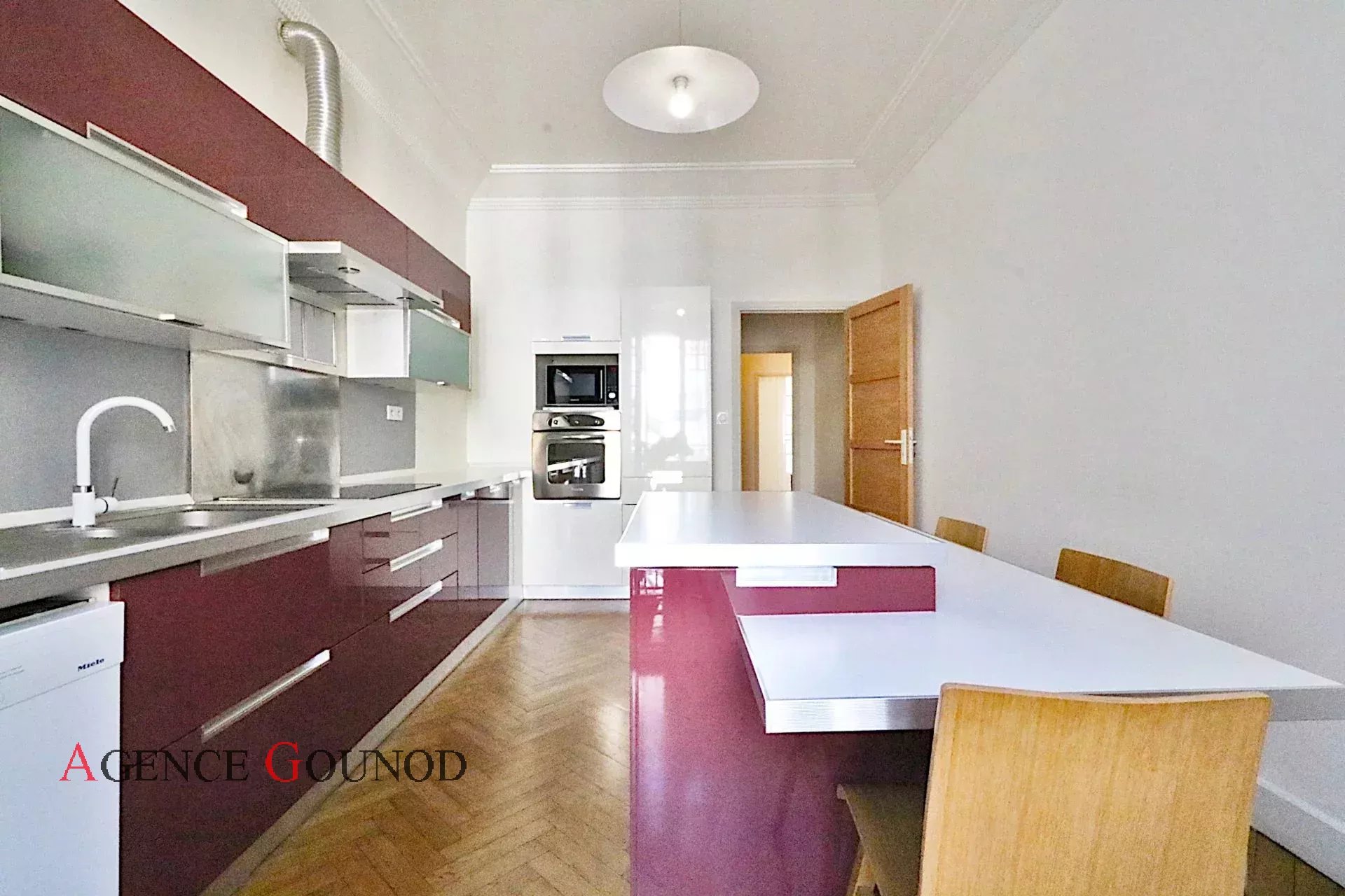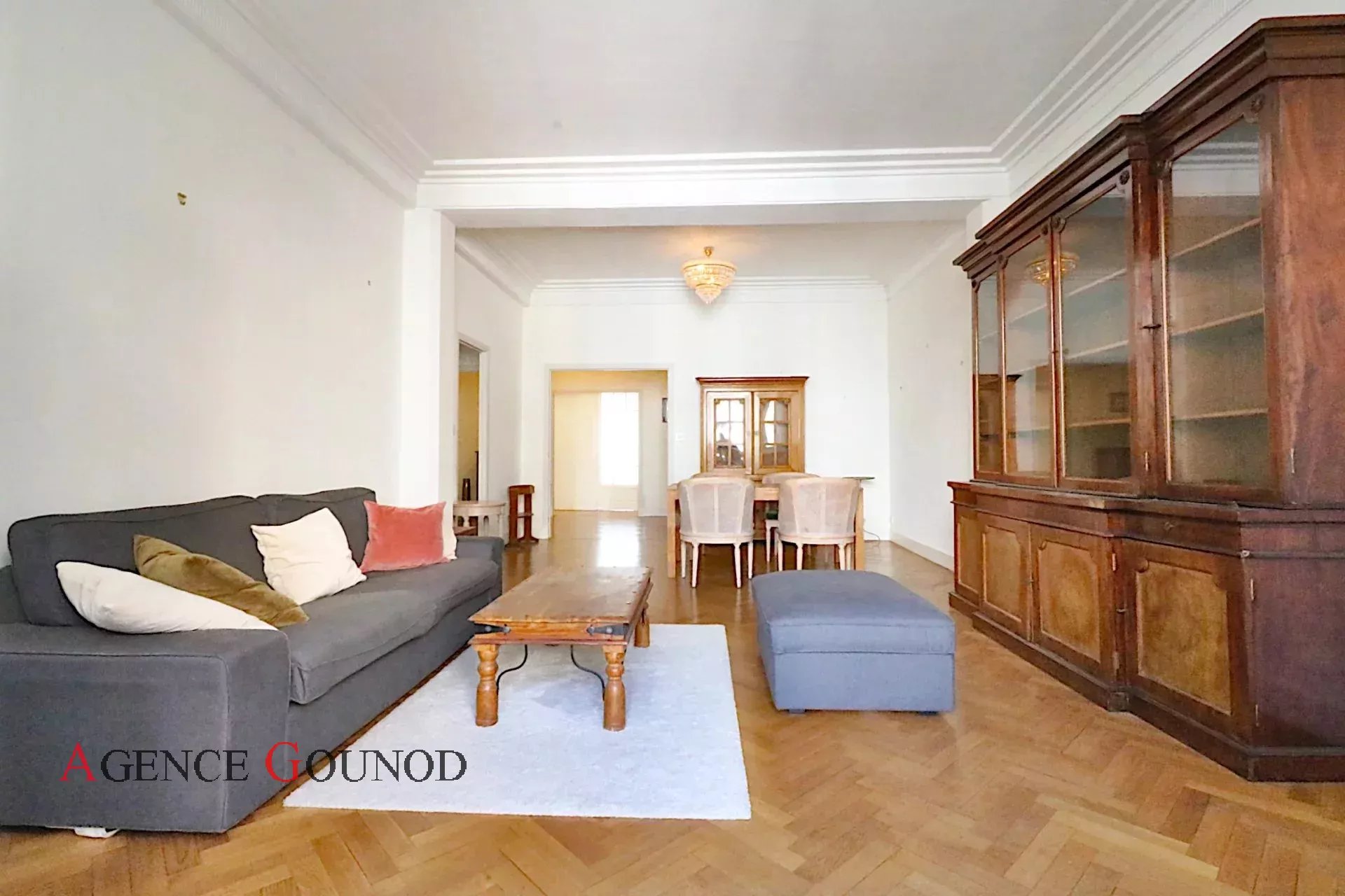 Au 3ème étage avec ascenseur d'un bel immeuble Art-Déco, Appartement 4 Pièces de 145 m² lumineux et au calme, traversant Sud-Nord et composé d'une Entrée avec dégagements, un grand Séjour-Salle à Manger avec balcon sur jardin arboré, une Cuisine dinatoire, une Chambre avec Salle de douche, 2 grandes Chambres avec balcons, une Salle de bains & WC, un WC invité, un Dressing, une Buanderie et 2 Caves.