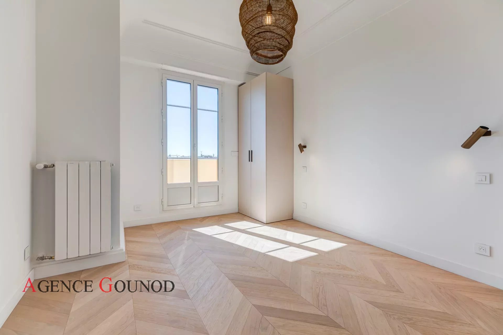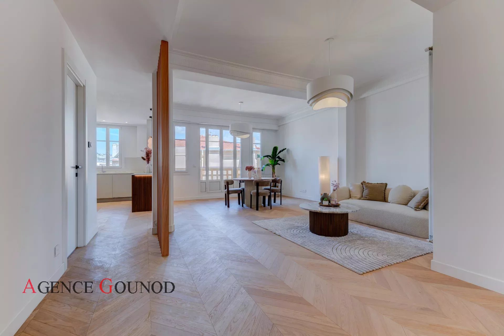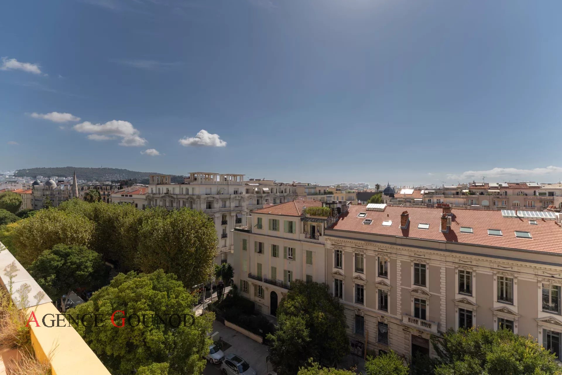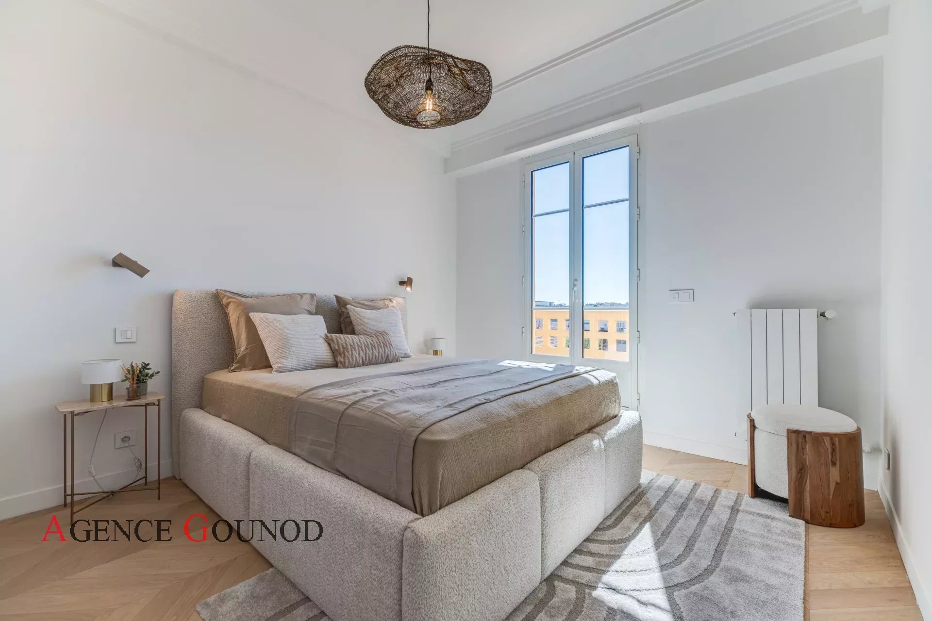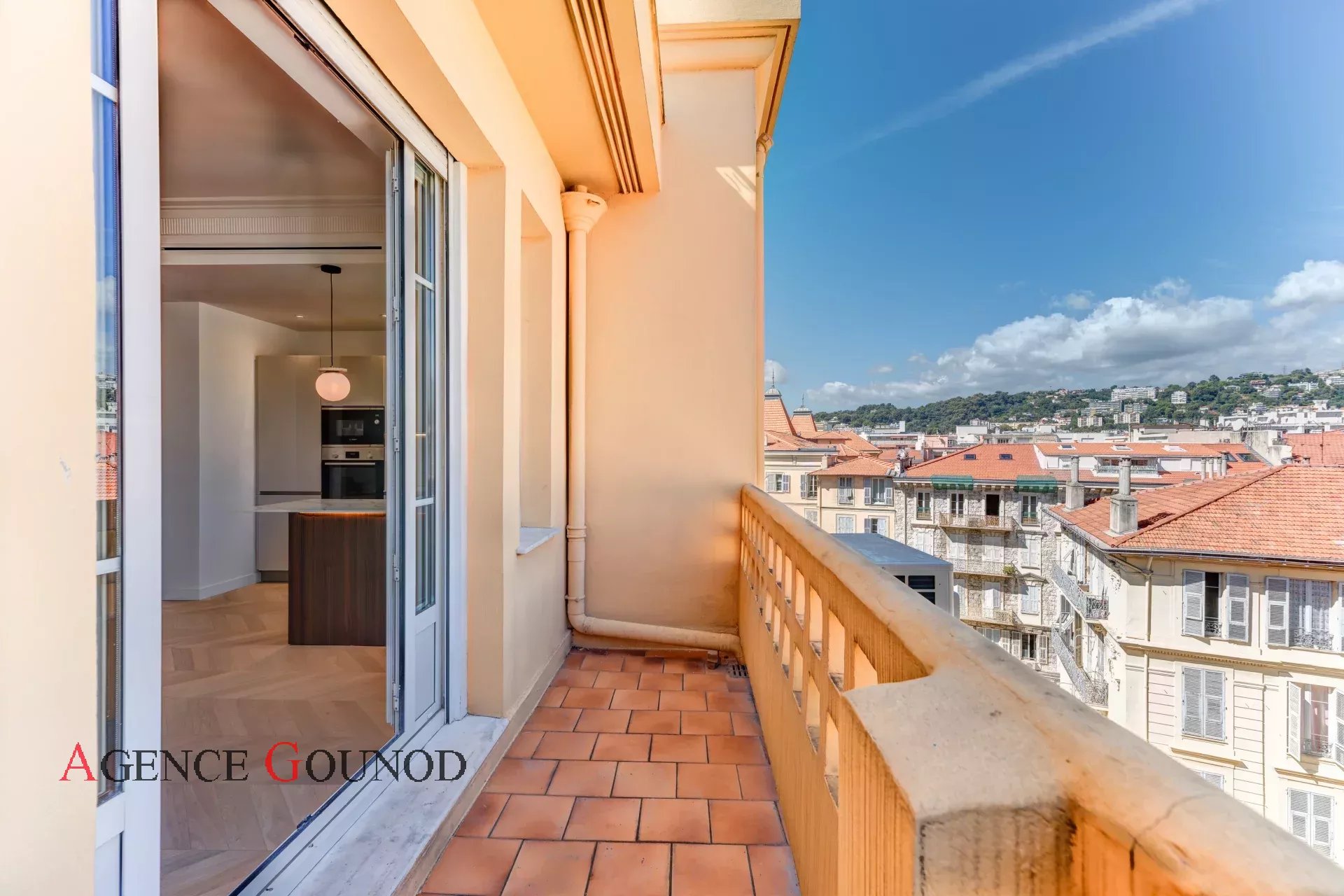Au dernier étage, magnifique 3 pièces traversant de 88 m² entièrement rénové, situé dans le Carré d’Or à Nice, à proximité immédiate de la mer, des commerces et des transports. L’appartement se compose d’un vaste séjour lumineux avec cuisine américaine équipée, de deux chambres avec salle de douche et WC, ainsi qu’un WC indépendant. Chaque pièce dispose d’un balcon, offrant une belle luminosité et un confort de vie optimal. Traversant Sud/Nord. Il est équipé d’un système de climatisation gainable dans tout l’appartement, discret et performant. L’ensemble a été rénové avec des matériaux de qualité, aucun travaux à prévoir. Emplacement recherché, parfait pour une résidence principale, un pied-à-terre ou un investissement locatif.