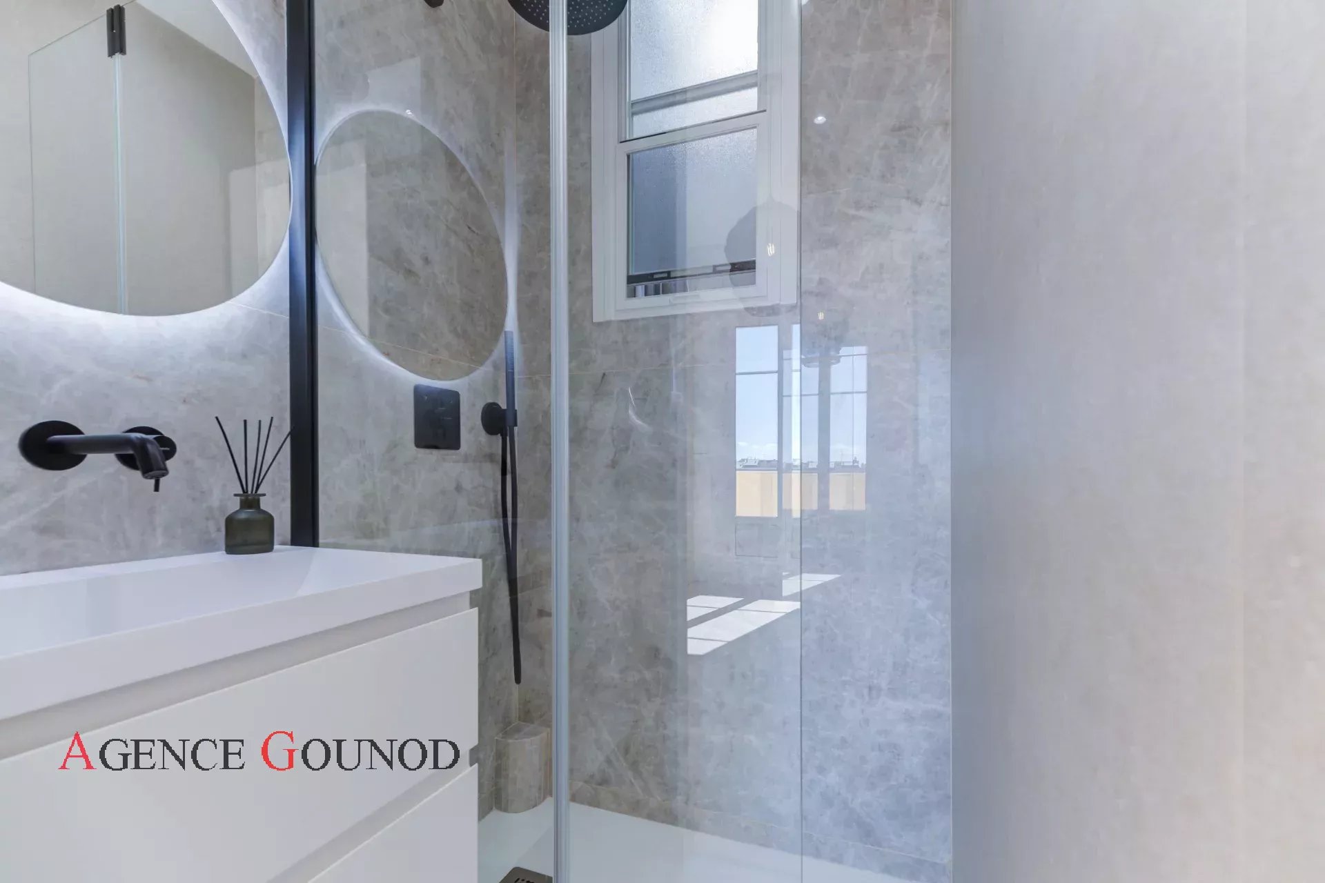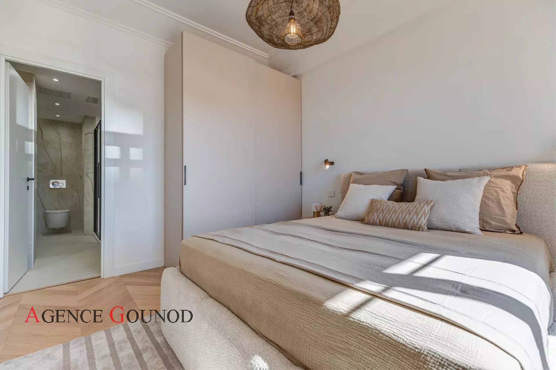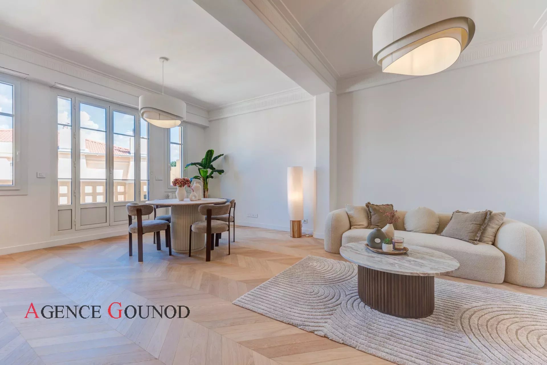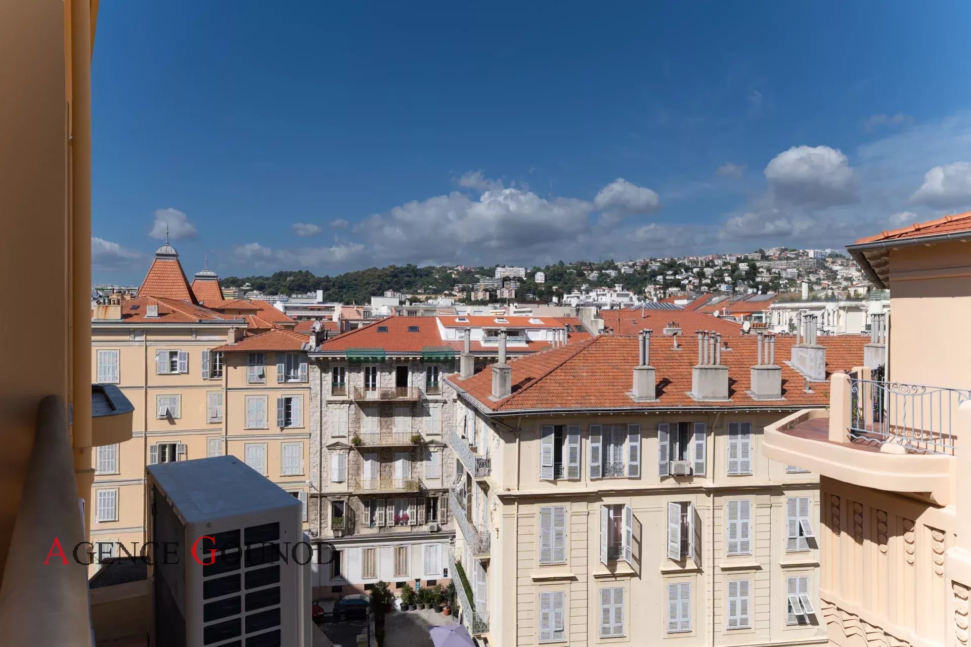 Au dernier étage, magnifique 3 pièces traversant de 88 m² entièrement rénové, situé dans le Carré d’Or à Nice, à proximité immédiate de la mer, des commerces et des transports. L’appartement se compose d’un vaste séjour lumineux avec cuisine américaine équipée, de deux chambres avec salle de douche et WC, ainsi qu’un WC indépendant. Chaque pièce dispose d’un balcon, offrant une belle luminosité et un confort de vie optimal. Traversant Sud/Nord. Il est équipé d’un système de climatisation gainable dans tout l’appartement, discret et performant. L’ensemble a été rénové avec des matériaux de qualité, aucun travaux à prévoir. Emplacement recherché, parfait pour une résidence principale, un pied-à-terre ou un investissement locatif.