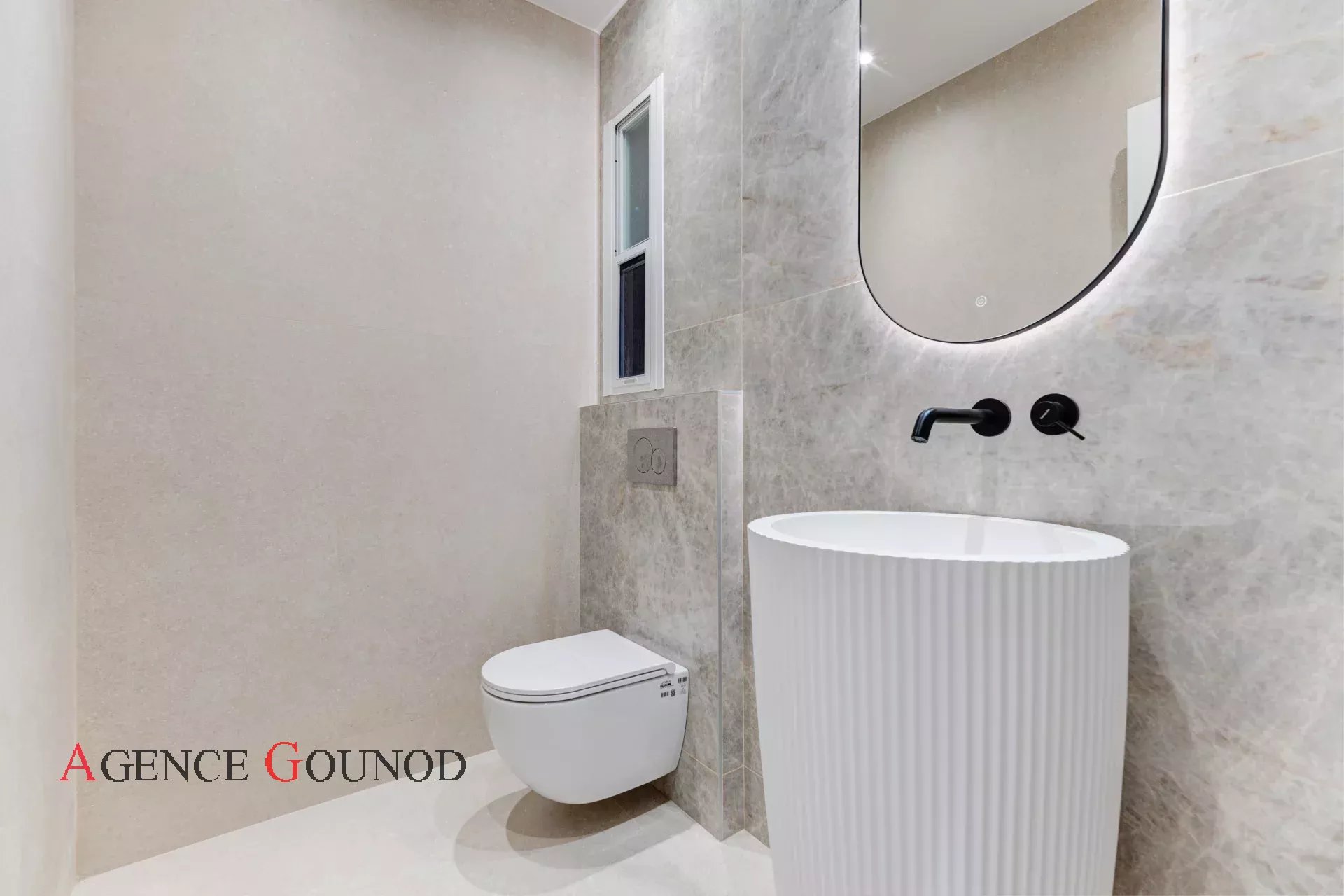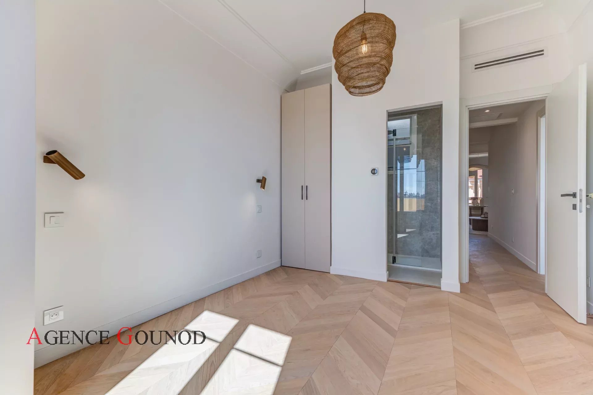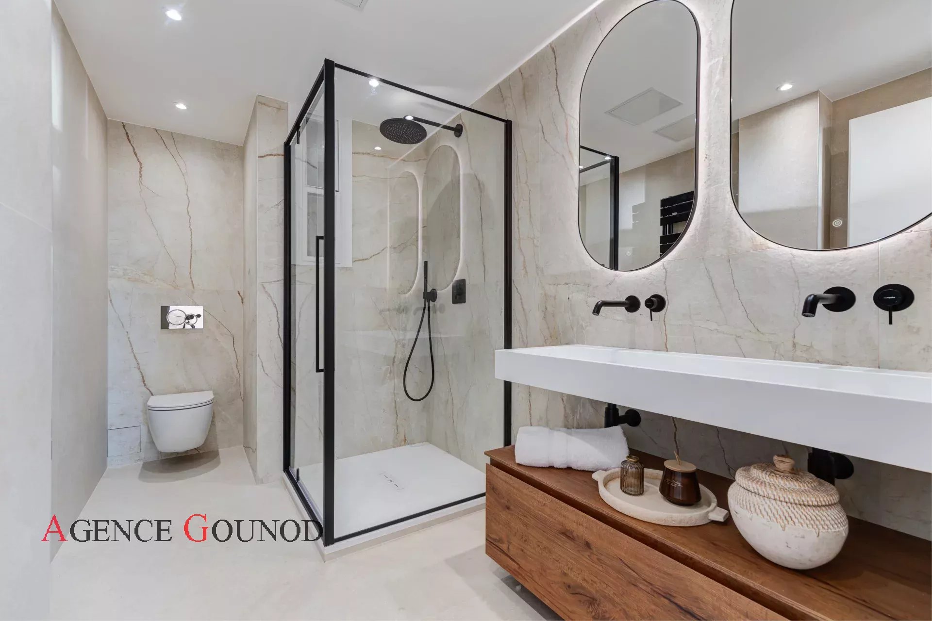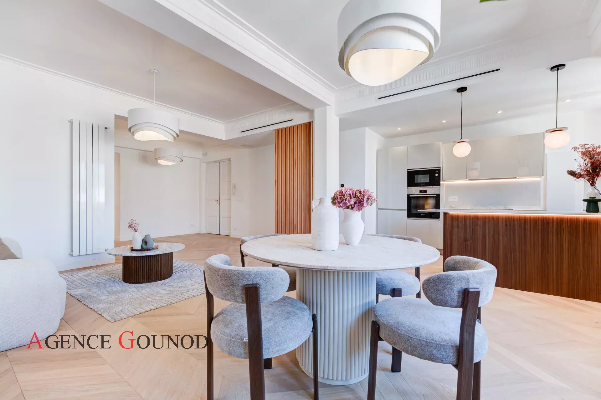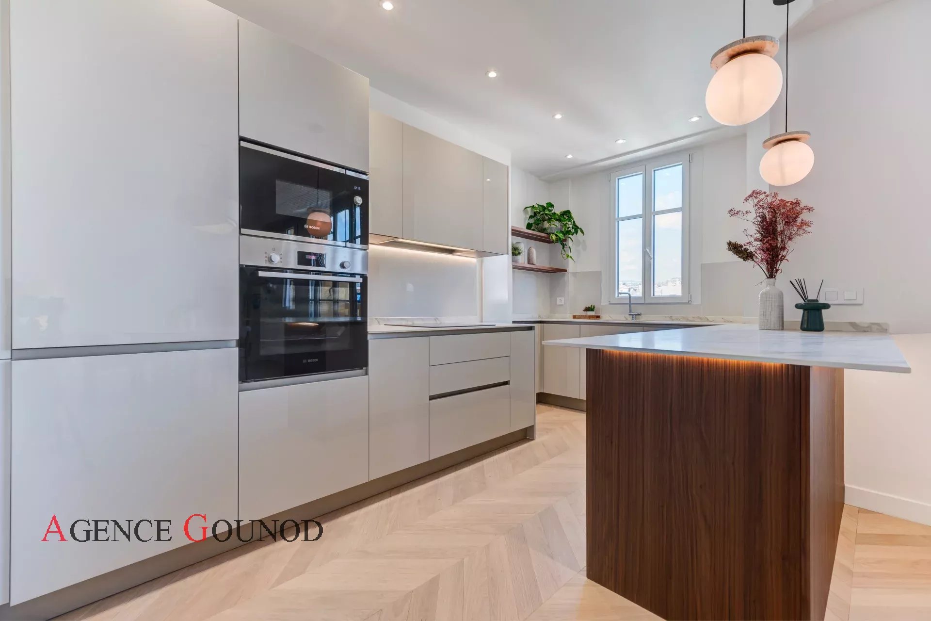 Au dernier étage, magnifique 3 pièces traversant de 88 m² entièrement rénové, situé dans le Carré d’Or à Nice, à proximité immédiate de la mer, des commerces et des transports. L’appartement se compose d’un vaste séjour lumineux avec cuisine américaine équipée, de deux chambres avec salle de douche et WC, ainsi qu’un WC indépendant. Chaque pièce dispose d’un balcon, offrant une belle luminosité et un confort de vie optimal. Traversant Sud/Nord. Il est équipé d’un système de climatisation gainable dans tout l’appartement, discret et performant. L’ensemble a été rénové avec des matériaux de qualité, aucun travaux à prévoir. Emplacement recherché, parfait pour une résidence principale, un pied-à-terre ou un investissement locatif.