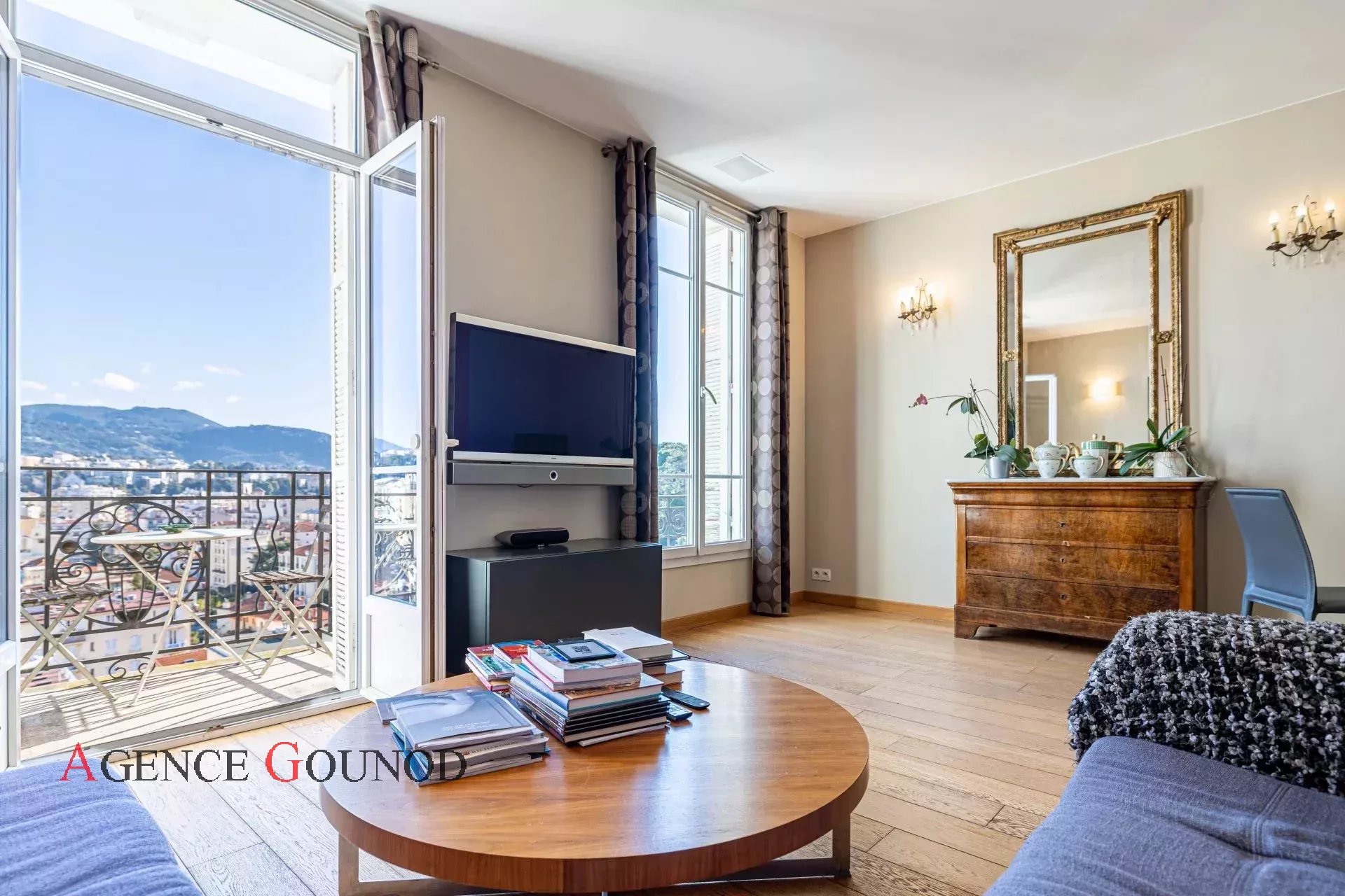 Superbe appartement 6 pièces de 165m² habitables (129m² carrez) traversant, de type triplex, avec vue panoramique allant des montagnes jusqu'à la mer, en passant par les toits de Nice.